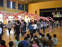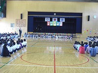 6年生のお兄さんお姉さんと手をつないでちょっぴり緊張した顔で入場してきました。