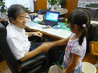 休み時間に、手作りの自分の名刺を先生たちに渡して握手をしてもらいました。