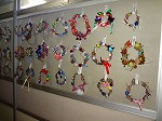 色とりどりのリボンやモールをつけ、可愛いリースが完成しました。