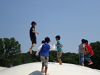 最後に、むさしキッズドームのたくさんの遊具でクラスやグループに関係なく、みんなで楽しそうに遊んでいました。