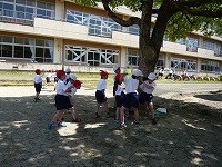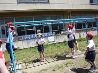 今日は、2年生との生活科交流があり、校庭で外遊びをしました。