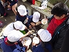 七輪を使用し、うちわであおぎながら火をたいて、もち焼きをしました。