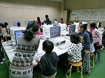 1年生は、学校のパソコンを使うのは初めてです。1年生は、パソコンで、しょうたいじょう作ります。3年生が、電源の入れ方、文字の入力のしかた、絵の入れ方など、ひとつひとつ丁寧に教えました。教えている姿は、頼もしくみえました。