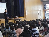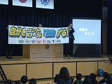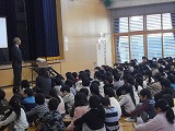 校長先生から、道路の歩き方やゲームの使い方などを例に健全で安全な生活を送るために、