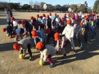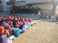 風の強さと寒さに負けず、元気に歌を歌ったり、ゲームをしたりしました。