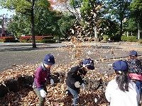 はっぱの色の変化やはっぱを踏んだ音、木の実を触った感触、五感を使って体全体で秋を体感してくることができました。