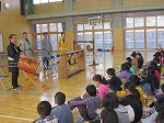 今日は講師をお迎えし、お囃子を体験しました。 雑誌を叩いてリズムの学習をしたり、実際に太鼓を叩いて地域の地囃子を行ったりしました。はじめはリズムがつかめず戸惑う子ども達でしたが、講師の方の熱心な指導により上手になりました。 普段は味わうことのできない体験に、子ども達も目を輝かせていました。とてもよい勉強になりました。講師の先生方ありがとうございました。