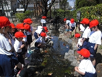 楽しそうな遊具やメダカ池、草花や石像など、色々な物を見つけては、とても嬉しそうでした。広い校庭で思いっきり遊ぶのを心待ちにしている様子でした。