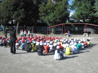 10月13日朝、さわやかな晴れ空の下、学年集会が行われました。