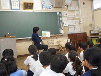 11月20日の昼休みに、本とのふれあい事業として、にじの会の方々に読み聞かせやお話をしていただきました。子供たちはにじの会の方のお話の世界に引き込まれ、楽しそうに聞いていました。いろいろな本を読んでみたいなと思わせる楽しい時間を過ごすことができました。にじの会の皆様、お忙しいところありがとうございました。