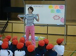 音楽にのりながら、全身を使って楽しく踊ったり、「ゾウ」に変身していろいろな動きを表現したりしました。子どもたちは、友達のゾウの表現を見ていろんなゾウがいることに気づきました。そして、お互いのよいところを褒め合いました。