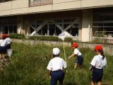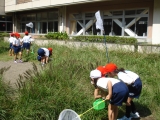 生活科の「いきものとなかよし」の学習で、虫取りをしています。