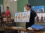 熊谷市の伝統行事である「うちわ祭」に関わっている地域の方を講師に招き、歴史や山車の仕組みについて、詳しく講義していただきました。子供たちは、学区内のお祭でもあることで、よく耳を傾けながら聞くことができ、疑問に思ったことを質問することができました。