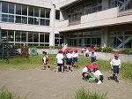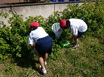 中庭の草むらとにらめっこしながら、バッタやカマキリ、コオロギがいないか夢中になって探していました。むしを見つけると「いたー!!!」と大きな声で、とてもうれしそうでした。