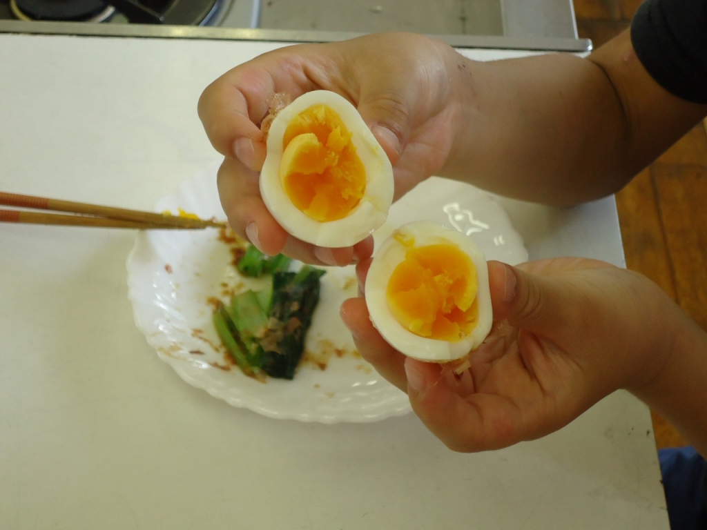 ゆでたまごをつくったり、青菜をゆでたりしました。