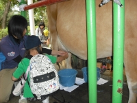 牛の乳搾りをしている様子。 ヤギに触ることができました!