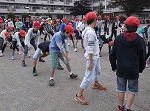 美しいハーモニーで「この星に生まれて」と「もみじ」を歌った後に、ボール運びリレーをしました。落とさないように気を付けながら、ボールを股下にくぐらせたり、頭の上を送ったりしました。「気を付けて。」「上手上手!」などと声を掛け合い、温かい雰囲気で楽しく遊びました。