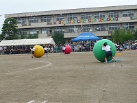 大玉ころがしでは二人一組で力を合わせて元気いっぱい競技することができました。
