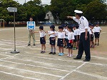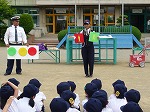 警察や交通指導員の方々から道路の渡り方や信号について教わりました。
