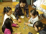 羽根つき・けん玉・メンコ・竹とんぼ・竹馬・コマ回し・おはじき・あやとり・お手玉の9つの遊びを行いました。