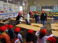 4年生が毎日手伝いに来て、教室や廊下の掃除の仕方を優しく教えてくれています。
