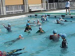 7月1日に着衣泳を行いました。「自分の命を守る術、もし川などで溺れている人を発見したら」等、自分のできることを考え、実践しました。真剣に取り組むことができました。